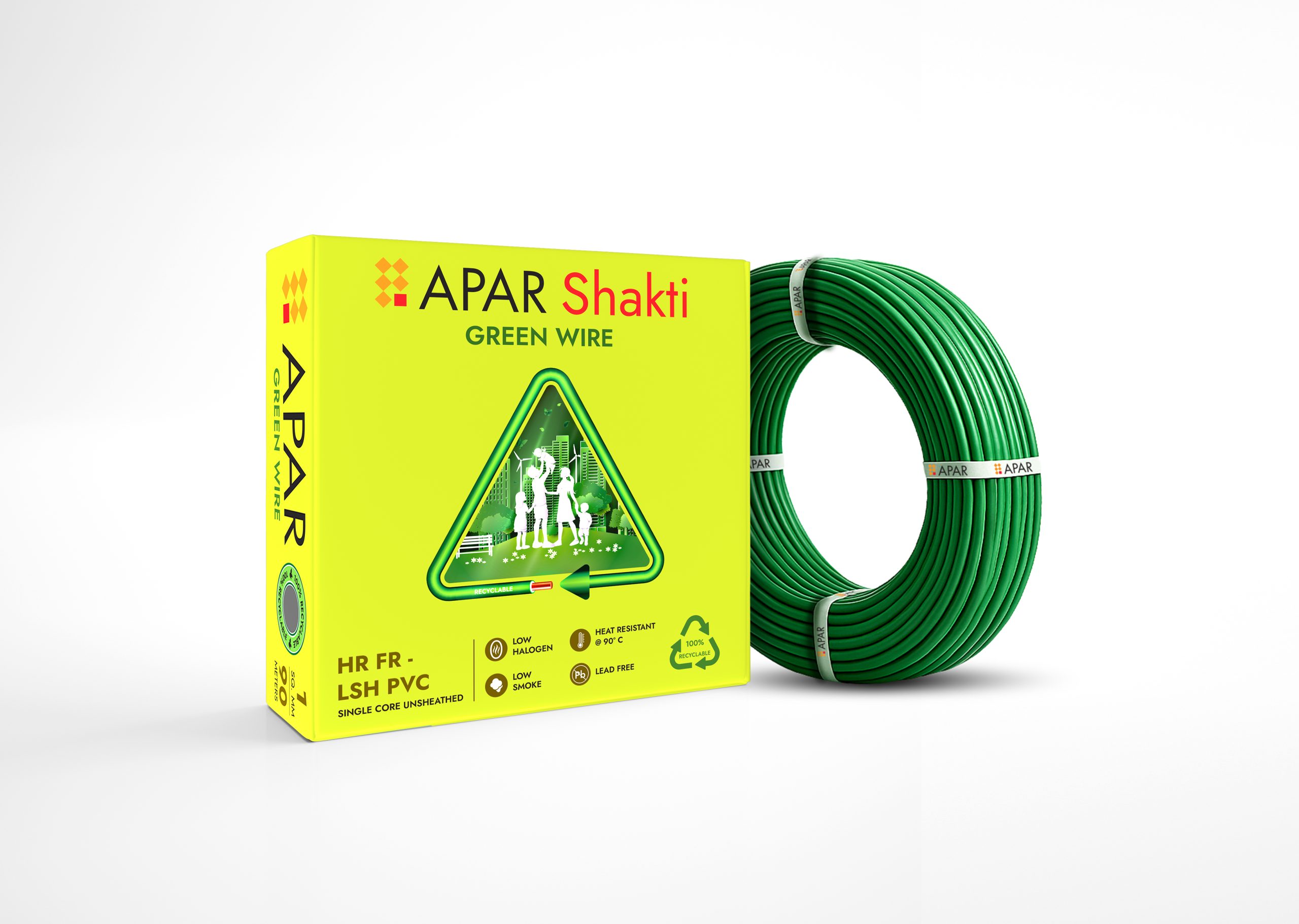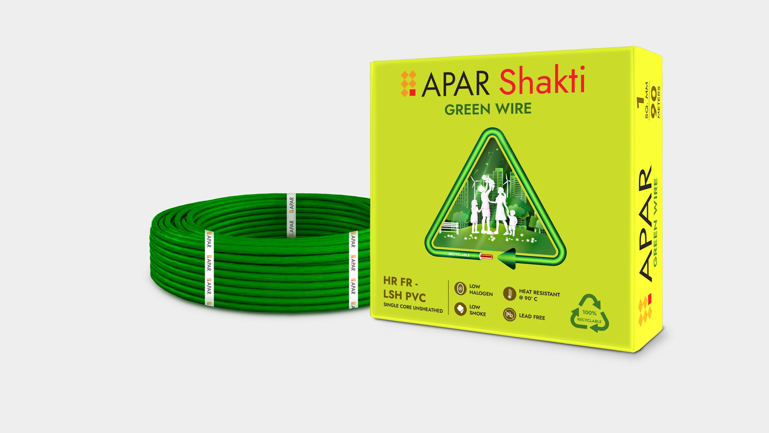 APAR SHAKTI” Single-Core Green Wire is built for safe and steady performance across a wide range of electrical needs. It uses a flexible copper conductor for smooth installation and reliable current flow. The HR FR-LSH PVC insulation offers high heat resistance, strong flame retardance, and low smoke and halogen emission, which helps protect people and equipment during a fire.